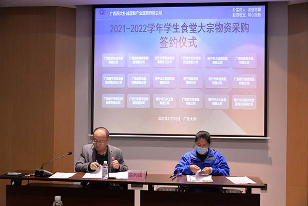 簽約儀式上,孔總首先介紹了我公司的有關(guān)情況,對(duì)供應(yīng)商的支持和幫助表達(dá)了感謝。孔總表示,雙方在接下來(lái)的合作中要相互配合,密切合作,共同在源頭上夯實(shí)食品安全防線。同時(shí)要求供應(yīng)商在配送物資過(guò)程中嚴(yán)格遵守廣西大學(xué)校園交通、校門管理等相關(guān)規(guī)定,與樸誠(chéng)公司一道為廣西大學(xué)的教學(xué)科研提供一流的后勤服務(wù)保障。隨后,孔總一一與各供應(yīng)商簽訂了供貨合同書(shū)。
