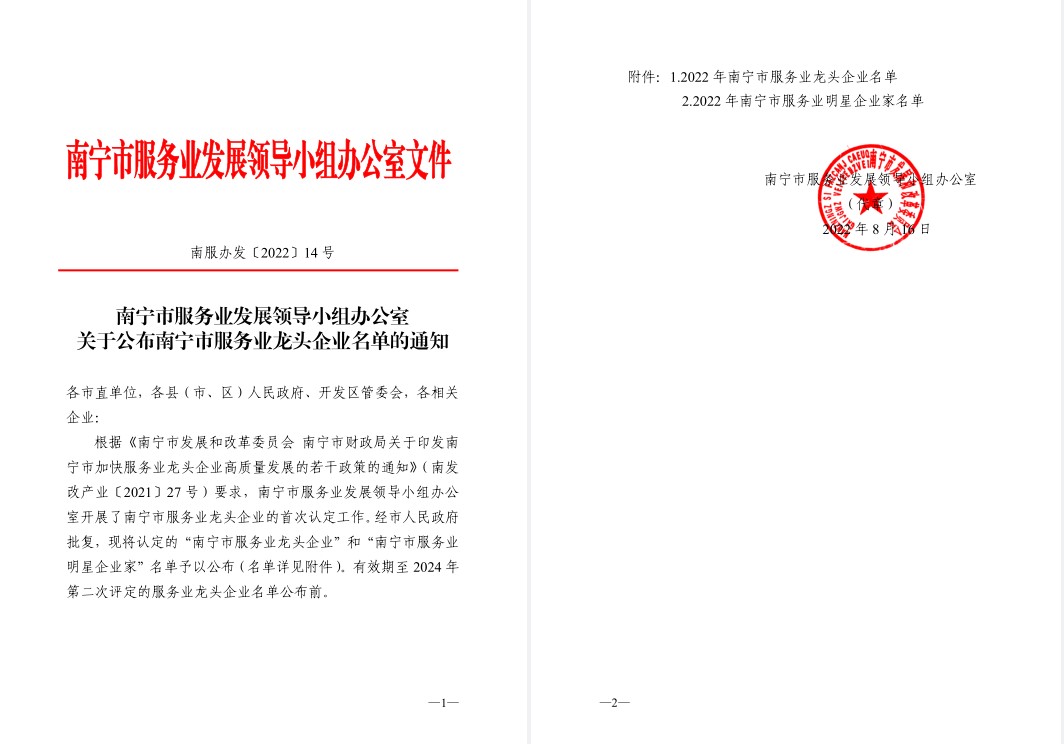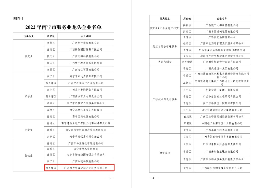 熱烈祝賀樸誠(chéng)后勤公司獲認(rèn)定為“南寧市服務(wù)業(yè)龍頭企業(yè)”
