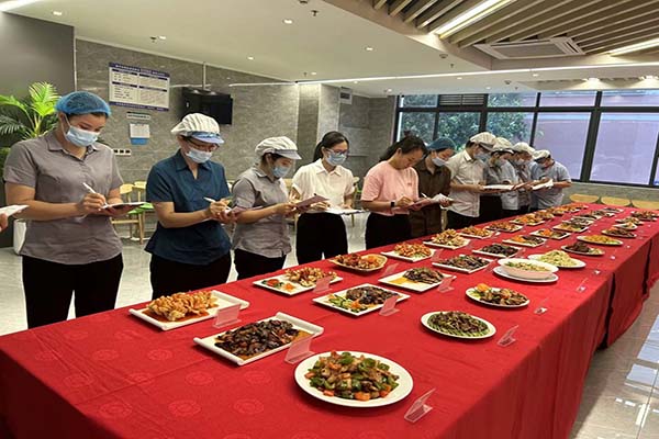 6月16月13:00,南苑第二餐廳開(kāi)展烹飪能手崗位練兵活動(dòng)。9名廚師參加了烹飪能手比拼,每人制作三個(gè)菜品,其中兩個(gè)固定菜品為紅燒茄子、糖醋菊花魚(yú),另一個(gè)菜品為自定義菜品。