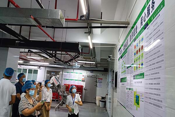 最后,調(diào)研組一行實(shí)地考察了食品檢測(cè)室、凈菜加工中心、秀苑餐廳、南苑餐廳等地。