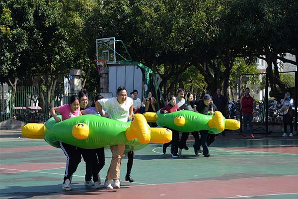 趣味運(yùn)動會設(shè)置的項(xiàng)目有龜兔賽跑、擊鼓顛球、超級毛毛蟲、跳長繩、胯下滾球、20人×80米折返跑接力、拔河等,運(yùn)動員一個個精神抖擻,配合默契,比賽非常激烈。啦啦隊(duì)們隨著比賽進(jìn)行到高潮,加油聲、歡呼聲、笑聲此起彼伏,場面好生熱鬧。經(jīng)過幾天的比拼,運(yùn)動會圓滿結(jié)束,各隊(duì)伍均取得了滿意的成績。