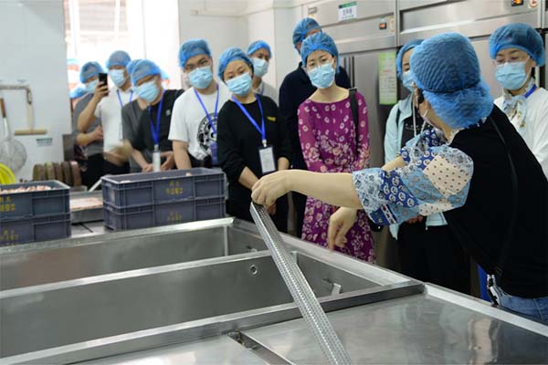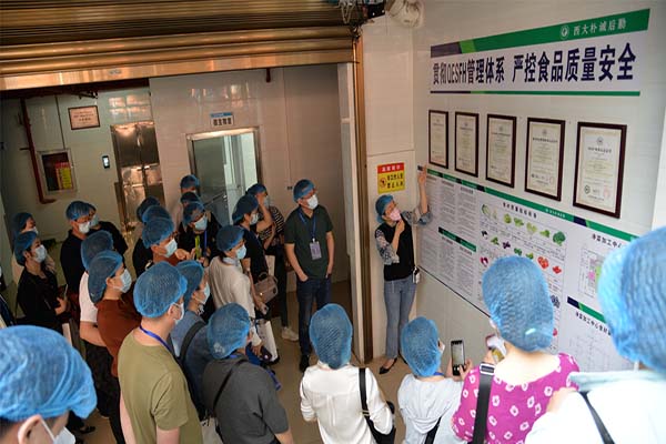 研討班一行參觀了凈菜加工中心和秀苑餐廳,對我公司所屬食堂餐飲從原材料到餐桌關(guān)鍵控制點的做法進行了實地調(diào)研,對我公司在食堂后廚實行的“無水廚房”管理模式以及在食堂食品安全等方面的管理表示認同和贊譽。