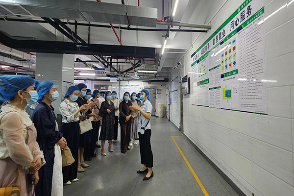 女工委員們在樸誠公司安監(jiān)部工作人員的講解帶領(lǐng)下,分別參觀了食品檢測室、蔬菜清洗間、肉類切配間、食材儲存間、白案加工間、烹飪間、餐具洗消間等各個區(qū)域,詳細了解了樸誠公司通過的五大體系認證、食堂“明廚亮灶”系統(tǒng)建設(shè)、食堂員工操作規(guī)范、食堂公用具管理規(guī)范、食堂的原材料管理規(guī)范和食品加工制作流程及標準要求等。大家對學(xué)校食堂的食品安全管控、無水廚房建設(shè)表達高度認可和贊譽。