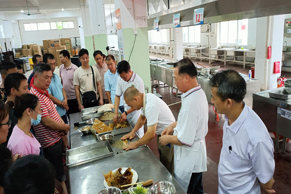 本次培訓(xùn)將理論與實(shí)操課程相結(jié)合進(jìn)行,理論課涵蓋了桂菜、川菜、湘菜等風(fēng)味特色及運(yùn)用創(chuàng)新,大學(xué)生營(yíng)養(yǎng)菜單設(shè)計(jì),中式面點(diǎn)和中式烹調(diào)知識(shí),以及菜品加工、創(chuàng)新研發(fā)及成本控制等方面,實(shí)操課則是以現(xiàn)場(chǎng)示范制作桂菜名菜《梧州紙包雞》《撈起檸檬鴨》《香煎大生蠔》《孔雀開屏魚》《欖仁炒牛奶》等進(jìn)行,邀請(qǐng)到了廣西烹飪餐飲行業(yè)協(xié)會(huì)曾大文、閉思維、張志慶、許東平、李大祖、蒙世濤等烹飪大師進(jìn)行授課,上課生動(dòng)有趣,干貨滿滿,廚師們收獲甚多。