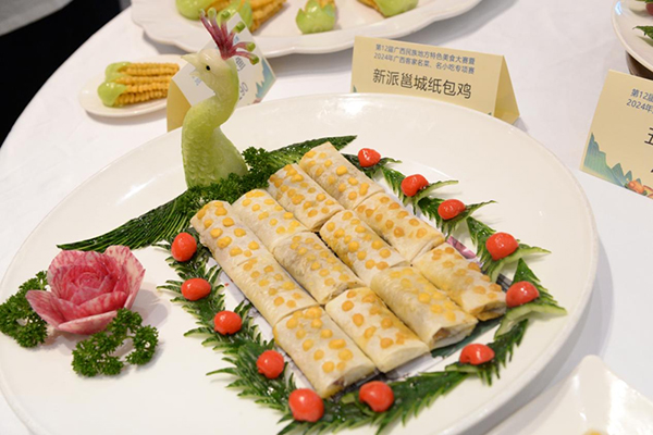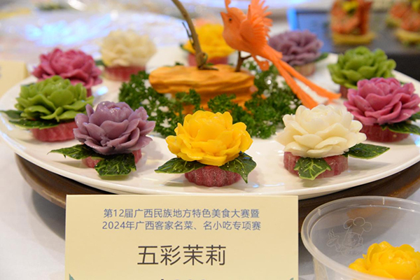 12月15日,第十二屆廣西民族地方特色美食大賽在南寧舉行,來自全區(qū)各市縣餐飲企業(yè)和職業(yè)院校選送的424個體現(xiàn)廣西桂菜四大風(fēng)味及客家風(fēng)味的美食品種參加了比賽。我司代表隊由東苑餐廳經(jīng)理羅照才率隊參加比賽,并斬獲團體特金獎1個、單項特金獎3個、單項金獎2個。其中:壯鄉(xiāng)粽子酥、茅魚露蝦、新派邕城紙包雞獲單項特金獎;五彩茉莉、形象玉米魚獲單項金獎。