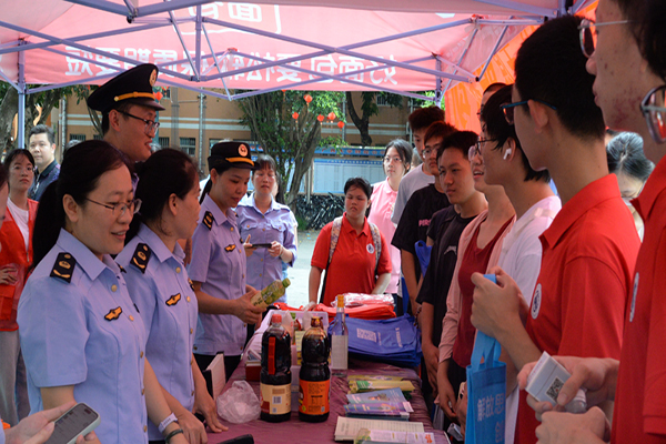 為進(jìn)一步提升校園食堂食品安全管理水平,加強(qiáng)新生對(duì)校園餐飲的了解,9 月19日,樸誠公司邀請(qǐng)了西鄉(xiāng)塘市場監(jiān)管局在秀苑餐廳廣場為來自各學(xué)院約140名新生代表講解食品安全知識(shí),助力學(xué)校開展的“新生走后廚”活動(dòng)。